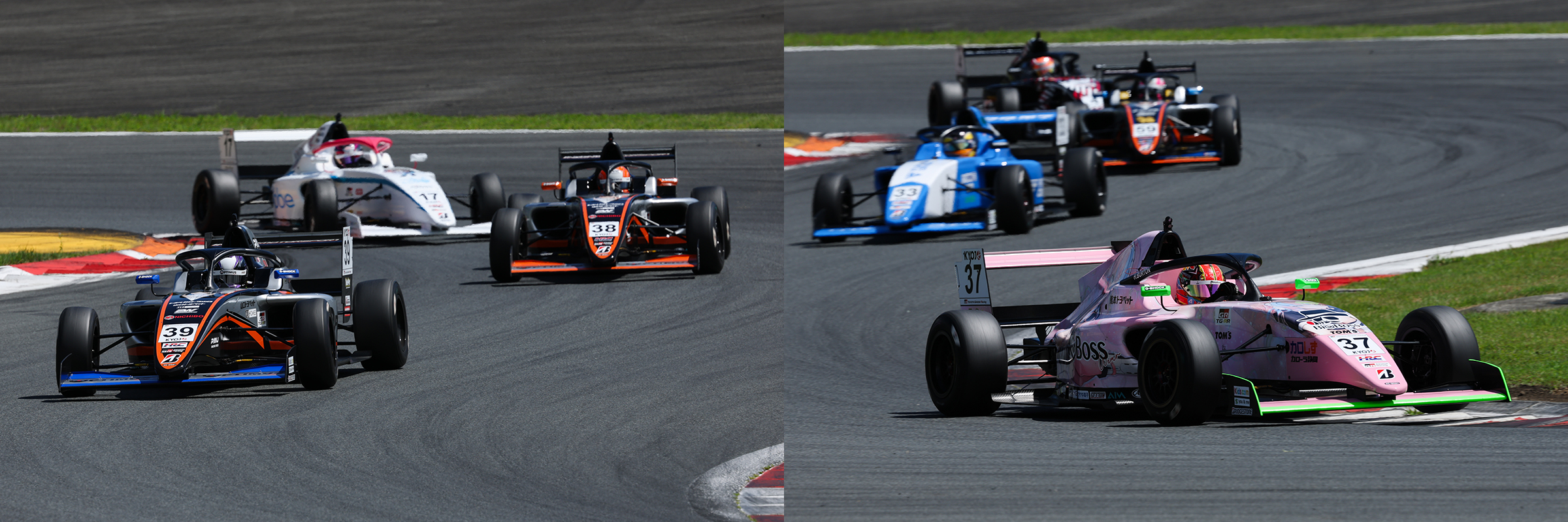 セッション後半を迎えると、最後尾からスタートし、着々と順位を上げる#37 バートンハナ(BigBoss W TOM'S KYOJO KC-MG01)が#46 永井歩夢(NBAありそ鮨しKYOJOフォーミュラ KC-MG01)、#4 平川真子(docomo business ROOKIE KC-MG01)を攻略。ペースの良いバートンは8周目に#8 佐々木藍咲(LHG KDDP KC-MG01)、10周目に池島をオーバーテイクし、入賞圏内の8番手までポジションをあげてみせた。