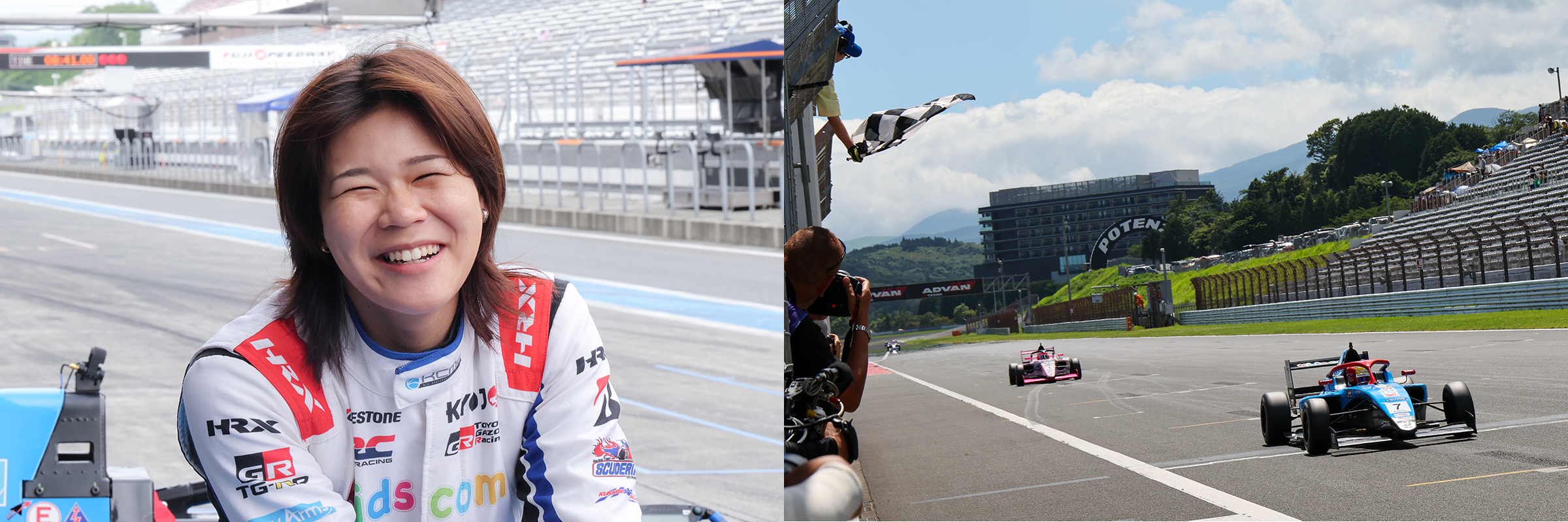2025年のKYOJO CUP Rd.2のファイナルレースが7月20日(日)に富士スピードウェイで開催され、昨日に続いて晴天に恵まれるなか、#7 翁長実希(Kids com KDDP KC-MG01) が今季初優勝を飾った。