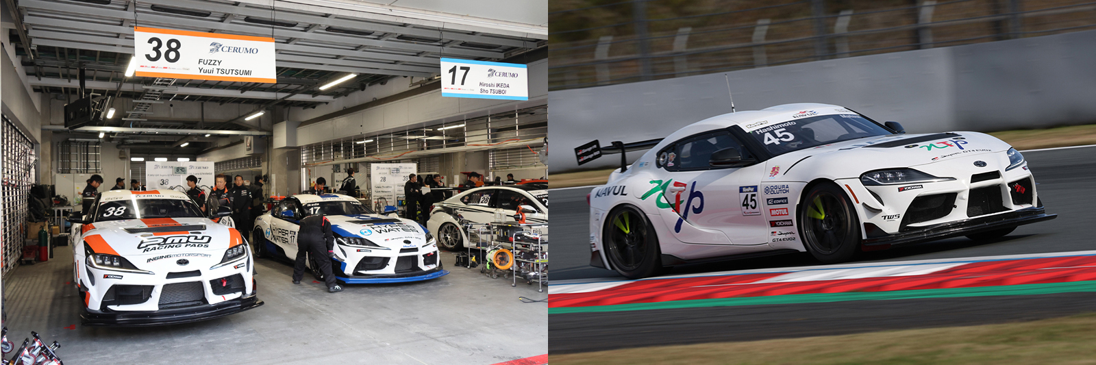 プロフェッショナルレースには、#17 坪井翔(HW GR Supra GT4 EVO2)、#38 堤優威(P.MU GR Supra GT4 EVO2)、#45 松井孝允(NTP GR Supra EVO2)の3台がエントリー。予選から激しいトップ争いが展開された。